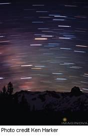 Star Trails Star Trails Star trails are a fun kind of time lapse photography that can be performed under any decent dark sky. Using a SLR (Single Lens Reflex) camera and an ordinary camera tripod, you can point the camera at the sky and open the shutter for several minutes. As long as the camera does not move during the exposure, you will capture the apparent movement of the stars in the sky during the exposure. Pointing the camera near the celestial pole will reveal steep concentric arcs. The further away from the pole you point the camera, the straighter the arcs become. |