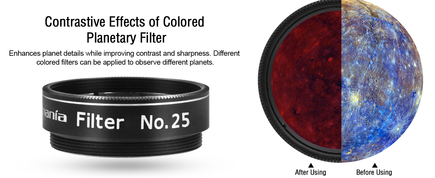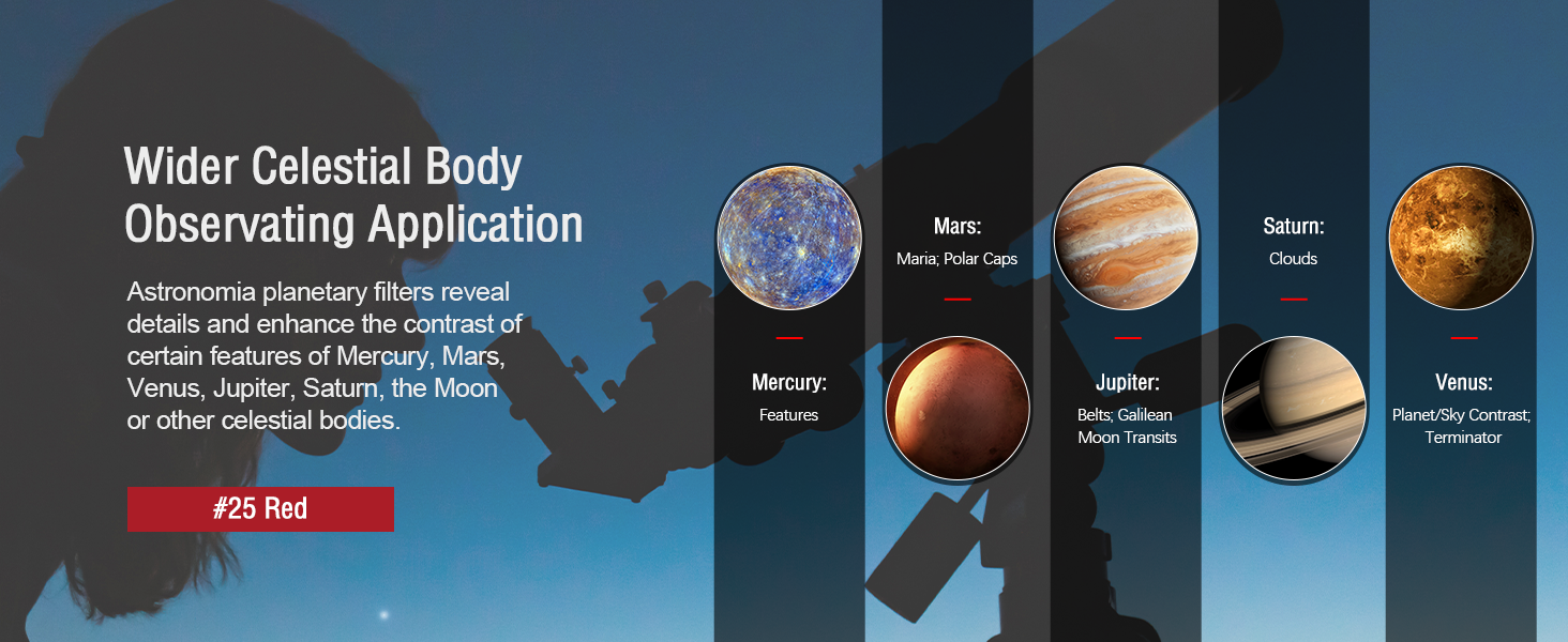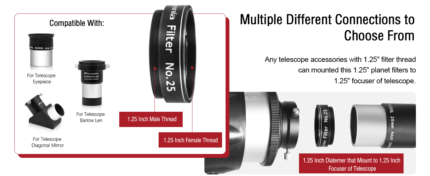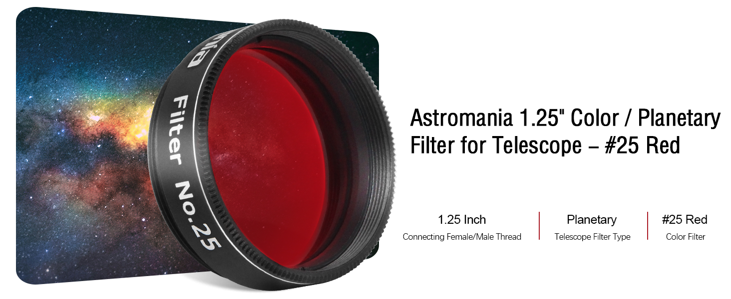 Astromania Telescope Filter 1.25 Inch - #25 Red, Planetary Filter for Astronomy Telescope & Eyepiece, Telescope Color filter for Enhancing Contrast in Lunar Planetary Observation