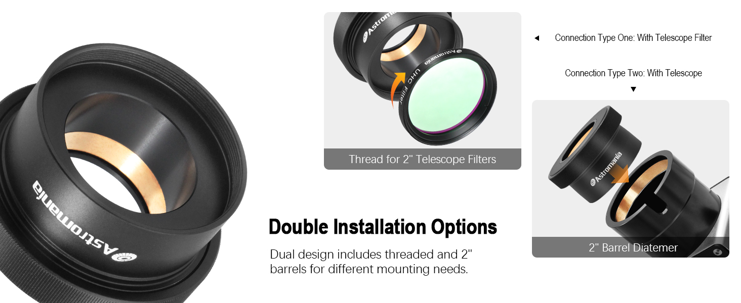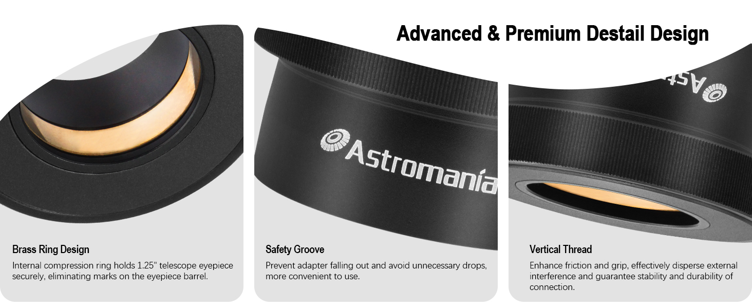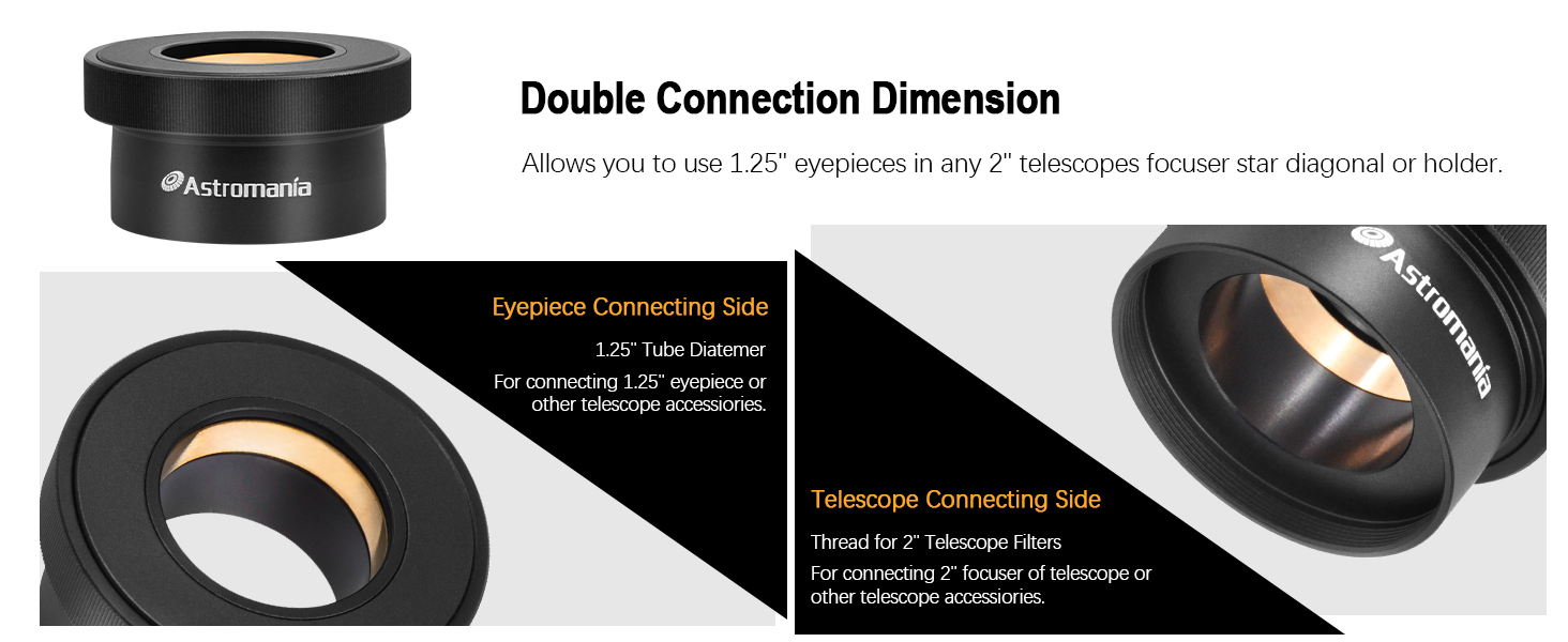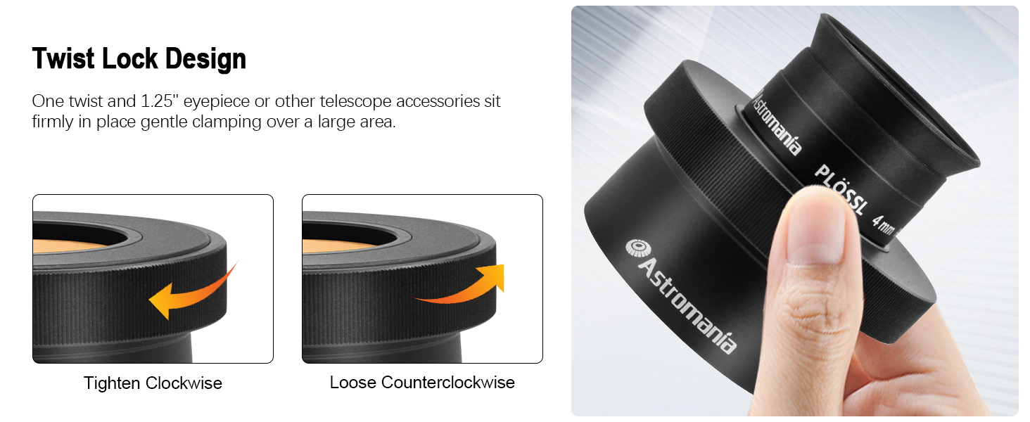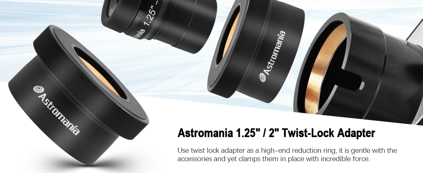 Astromania 2 inch to 1.25 inch Twist-Lock Eyepiece Adapter for Telescope Metal - Precision-Engineered Positive-Lock System, Ensuring Optimal Centering of Eyepiece with Protection Against Scratches