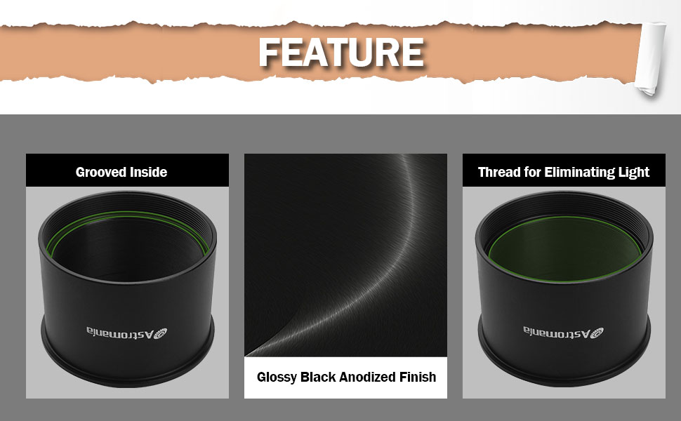 This adapter is mainly used for direct focus photography with SLR cameras, particularly suitable for Newton reflected telescope, Do not take a light path,do not occupation the optical path,one size of the adapter connect to digital camera or other T2 accessories,the other size insert to 2" telescope focuser or other accessories.