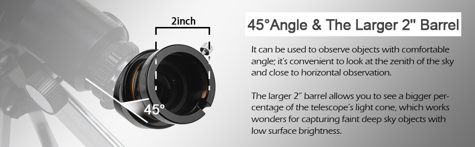 This wide 90 degree angle makes you view correct image from telescope stand,makes it easier to observe.