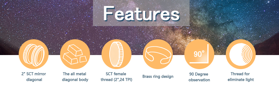 Superior Aluminum Materials: It is constructed from aluminum alloy; which significantly enhances the 2 Inch star diagonal longevity; improved attachment design features a brass clamping ring which does not mar and provides a more secure connection