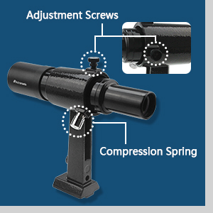 Screws for Convenient Adjustment In order for your small finder scope finds to locate what you are looking for, it has two small handy adjustment screws and one compression spring. These allow alignment with the main instrument to be carried out in just a few minutes.