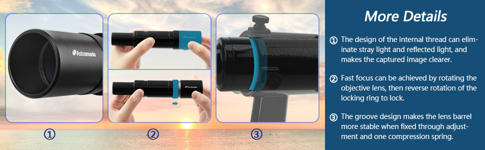 Three small adjustment screws which let you align it with your main telescope in just a few minutes.