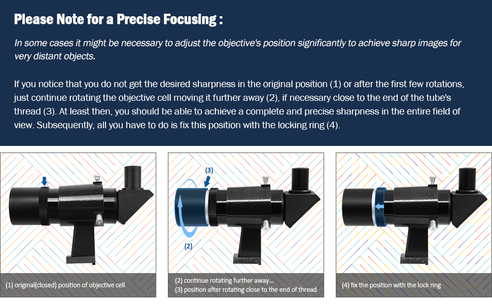 The design of the internal thread can eliminate stray light and reflected light, and makes the captured image clearer. The blackening treatment of the edge of the lens can effectively prevent the reflection and achieve the maximum contrast, which is conducive to planetary observation.
