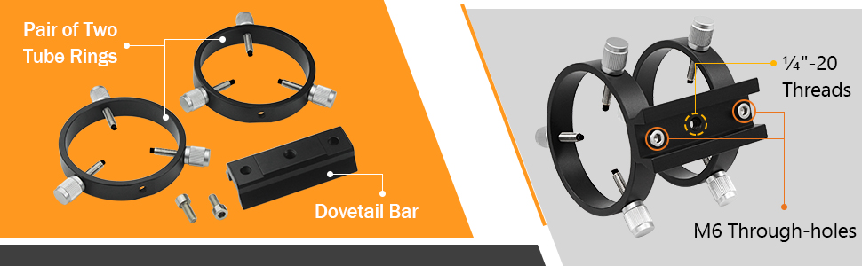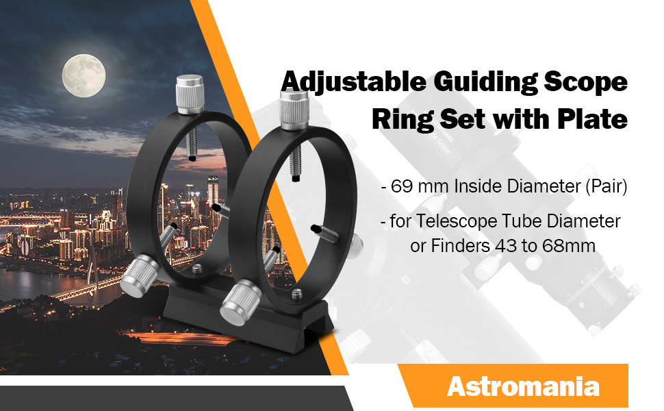 Astromania Adjustable Guiding Scope Ring Set with Plate - 69 mm inside diameter (pair) - for telescope tube diameter or finders 43 to 68mm