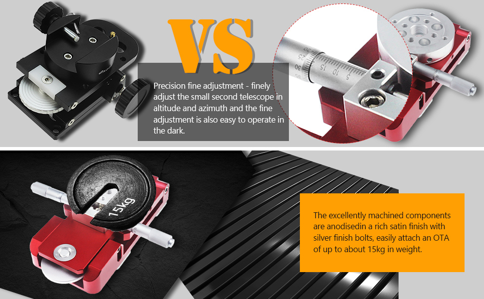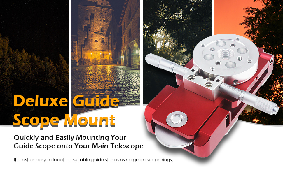 Astromania Deluxe Guide Scope MountThe Astromania Deluxe Guide Scope Mount provides a way of quickly and easily mounting your guide scope onto your main telescope. Features full alt-azimuth control for quick and precise alignment of guidescope. Simply attach this compact component to the piggyback mount of your telescope and you have a parallel mounting for your guide scope. Not only that, but it lets you finely adjust the small second telescope in altitude and azimuth. Technical parameter: