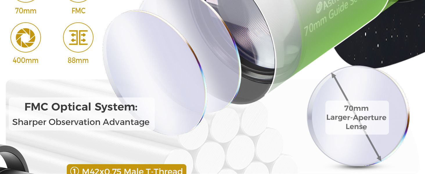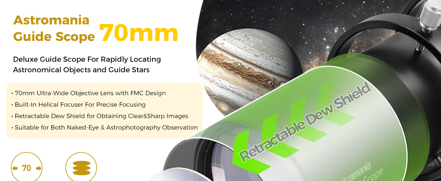 Astromania Guide Scope 70mm with Double Helical Focuser Compact Deluxe Finder and Guide Scope Compatible with 1.25 inch Eyepiece for Astronomical Telescope & Auto Guiding Cameras for Astrophotography