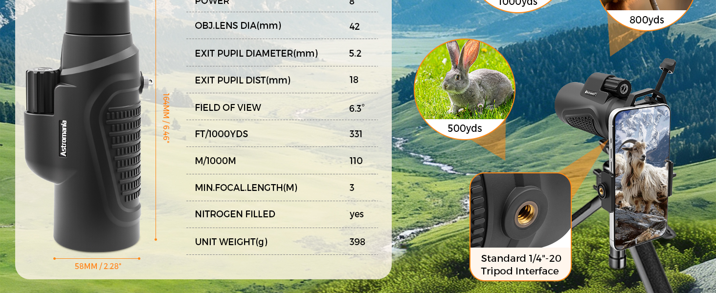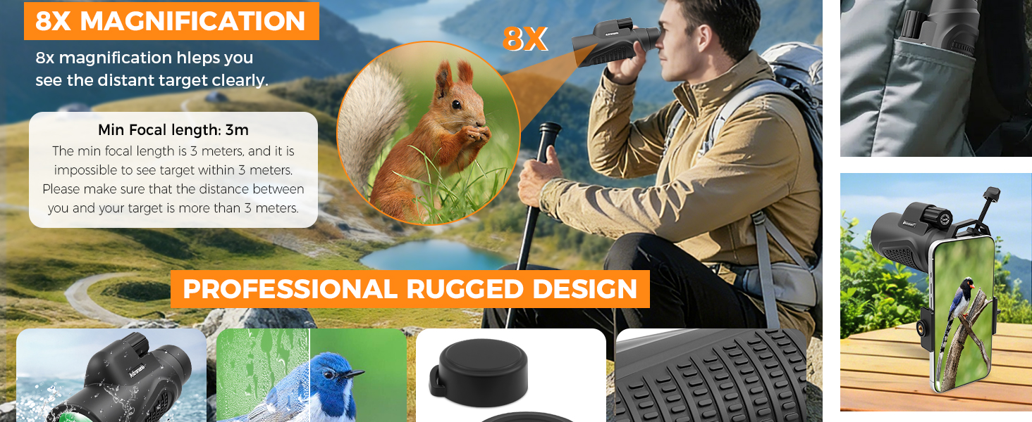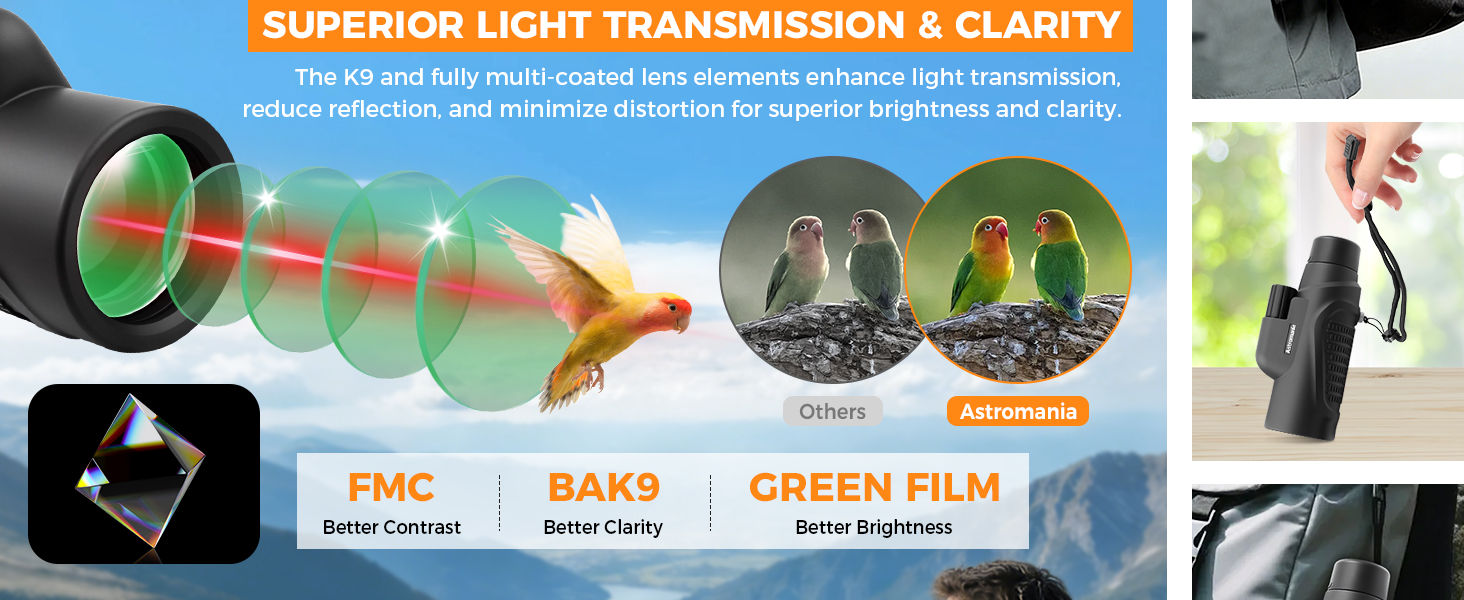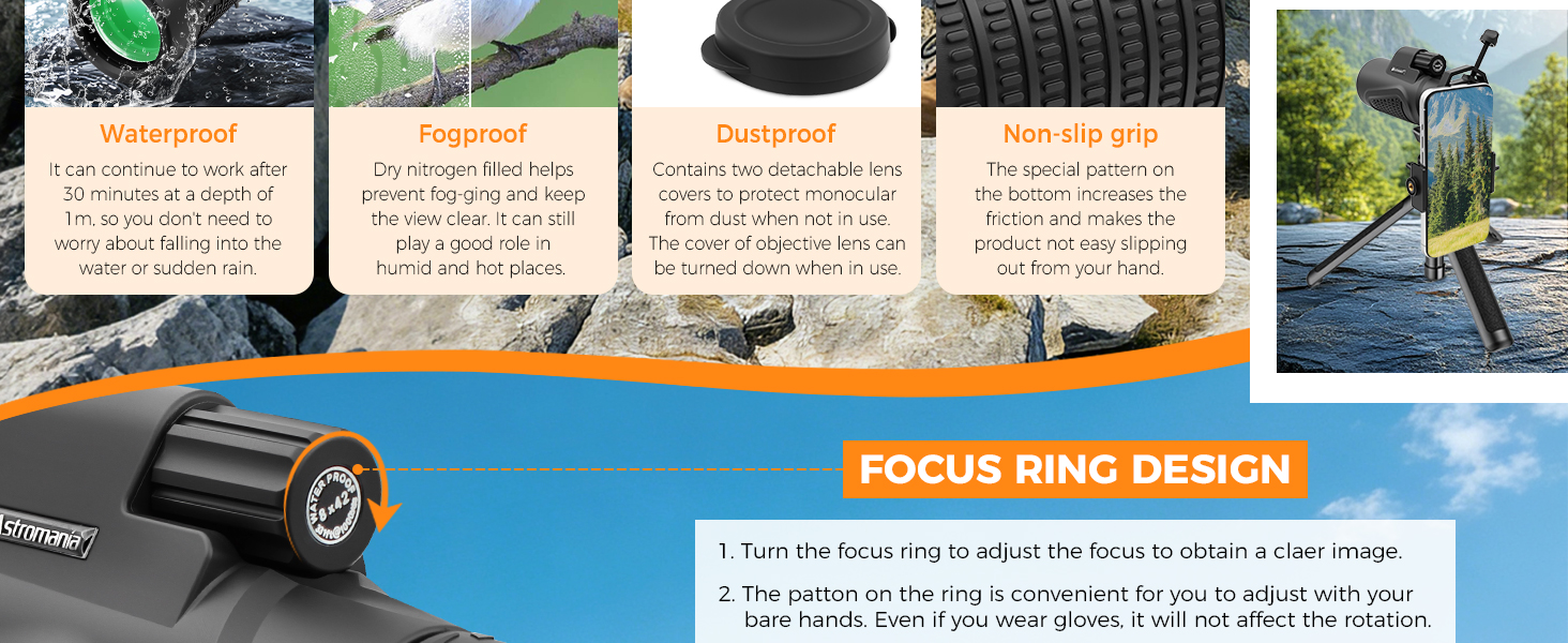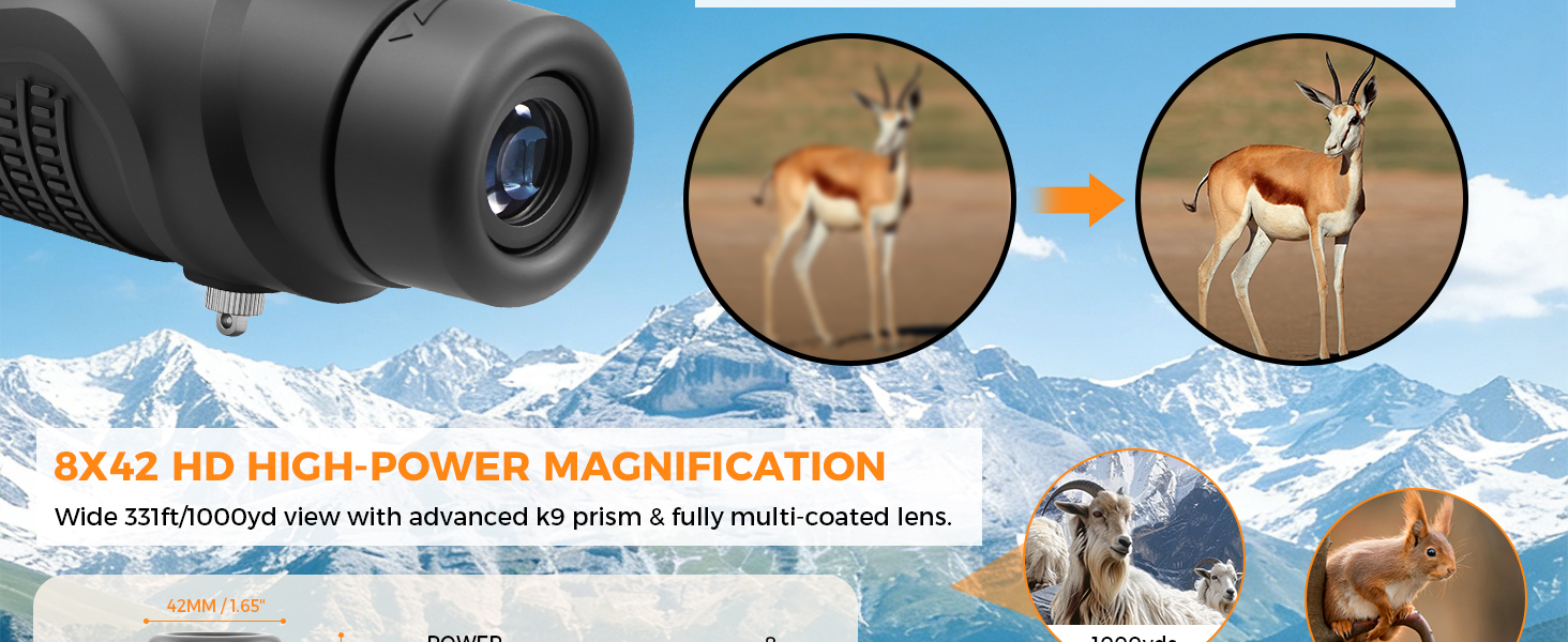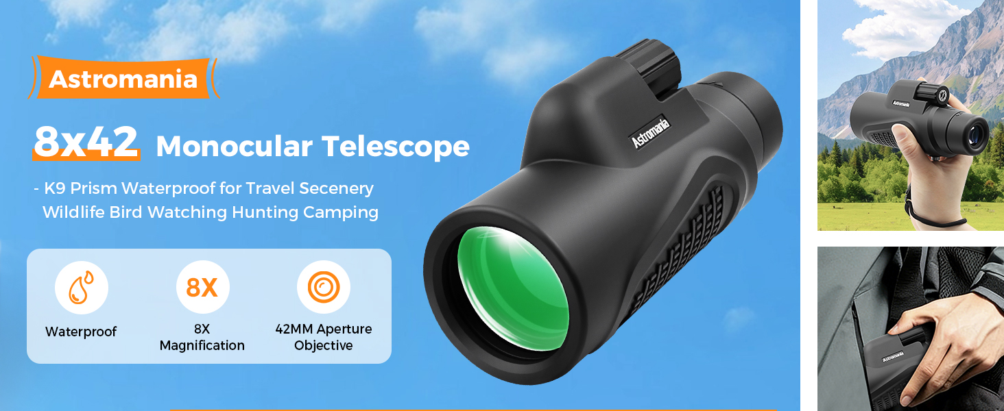 Astromania Monocular Telescope 8x42 HD K9 Prism - High Power & Compact, Waterproof , Fogproof, Shockproof for Birdwatching, Camping, Wildlife - Multi-coated Optics, Rubber Armor & Non-Slip Grip