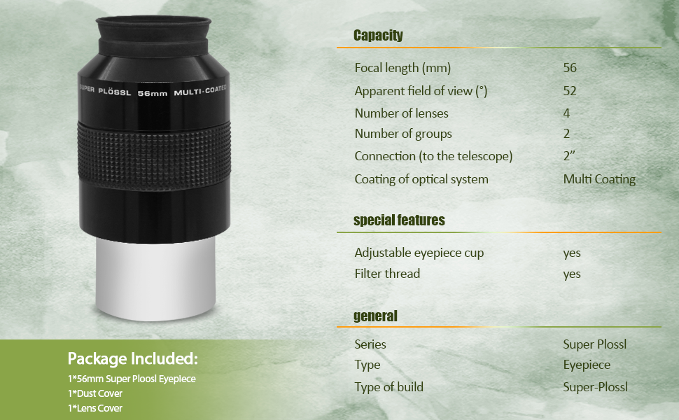 Astromania Super Plossl Eyepiece 2 Inch - Telescope Eyepiece 56mm Fully Multi-Coated Optics 52 Degree Wide Field 4-Element Design, High Eye Relief for Astronomy Telescope Included 2 Inch Filter Thread